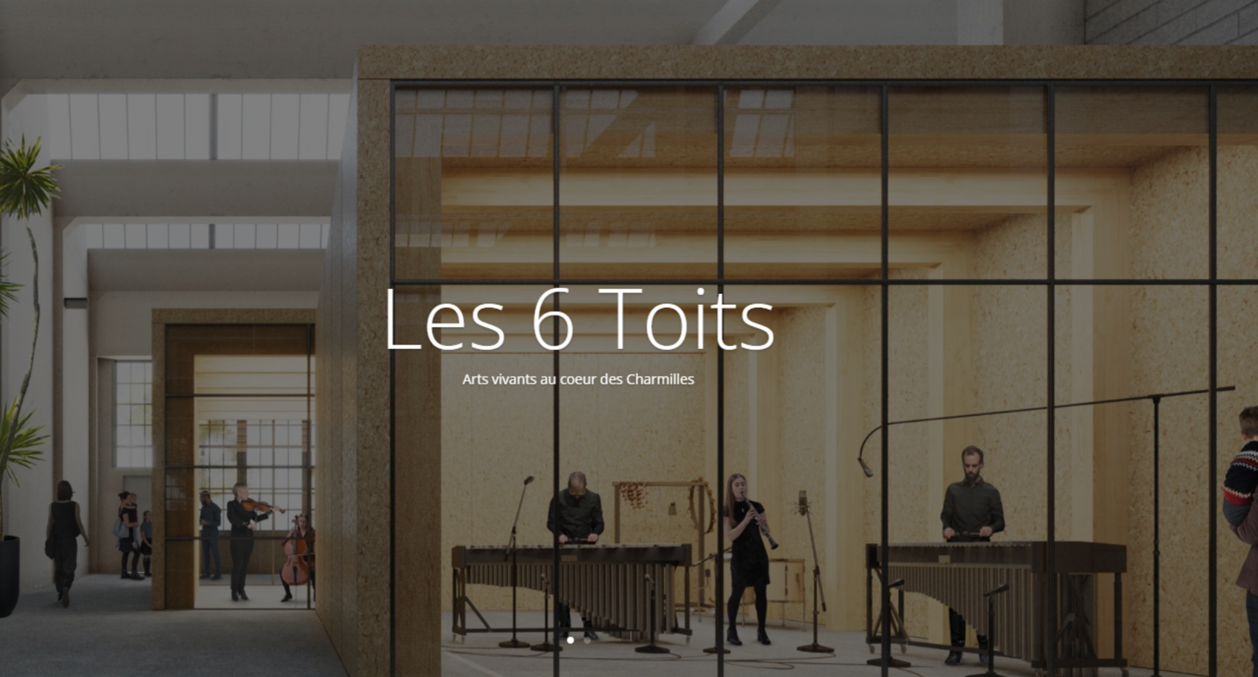 Imaginé par le bureau d’architectes Frei & Stefani, «Les 6 toits» proposent deux espaces de concerts et représentations théâtrales et pluridisciplinaires, six lieux de répétitions et d’enseignement, un instrumentarium de percussions et des espaces d’échanges et de médiation culturelle. Hébergés dans un ancien hall industriel, les espaces ont été aménagés à l’aide de modules en bois insonorisés et vitrés, en matériaux recyclables et démontables pour être réutilisés dans un autre lieu à la fin du bail.
